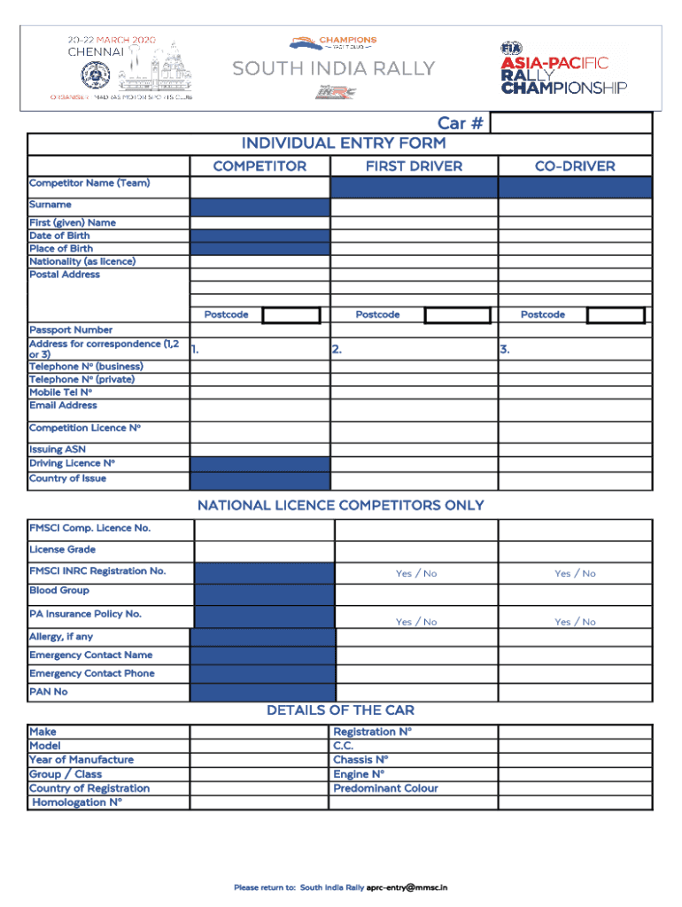 INDIVIDUAL ENTRY FORM