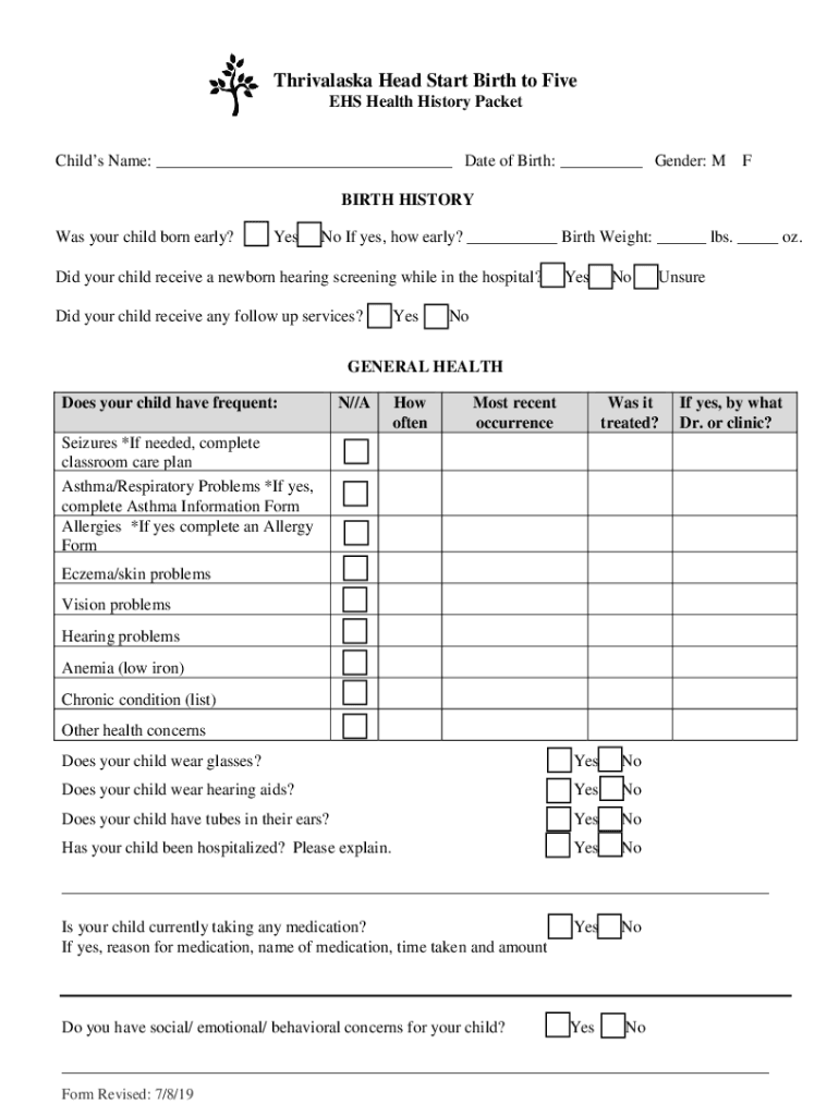 Get the free Thrivalaska Head Start Birth to Five EHS Health History ...