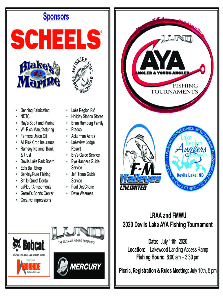 Sponsors Denying Fabricating DTC Rays Sport and Marine Tillich Manufacturing Farmers Union Oil All Risk Crop Insurance Ramsey National Bank & Trust Devils Lake Park Board Eds Bait Shop Berkley/Pure