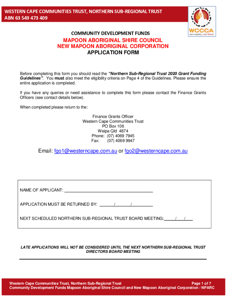 WESTERN CAPE COMMUNITIES TRUST, NORTHERN SUBREGIONAL TRUST
