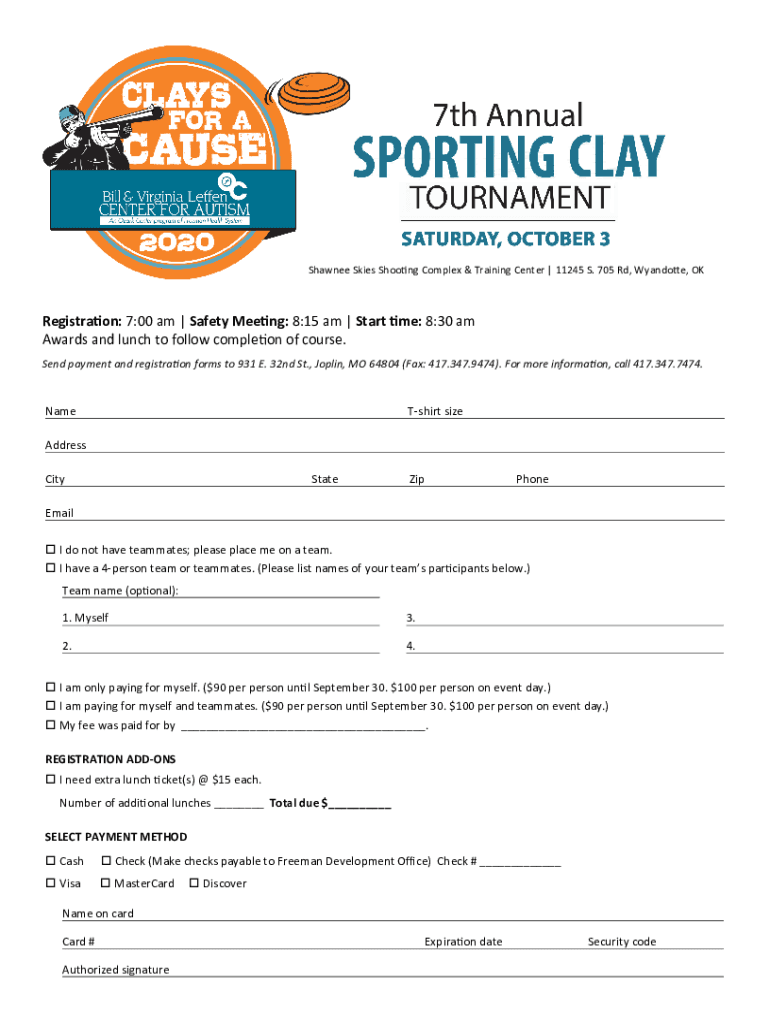 Shawnee Skies Shooting Complex & Training Center 11245 S. 705 Rd, Wyandotte, Registration: 7:00 am Safety Meeting: 8:15 am Start time: 8:30 am Awards and lunch to follow completion of course. Send