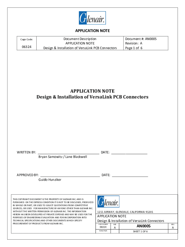 APPLICATION NOTE Cage Code:06324Document Description APPLICATION NOTE Design & Installation of Permalink PCB ConnectorsDocument #: AN0005 Revision: A Page 1 of 6APPLICATION NOTE Design & Installation