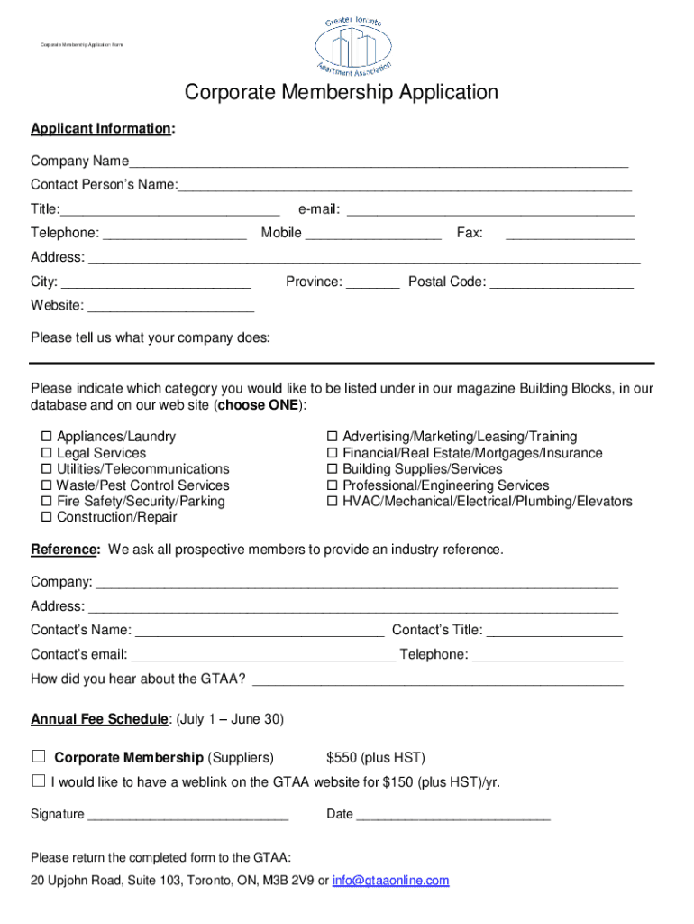 Corporate Membership Application FormCorporate Membership Application Applicant Information: Company Name Contact Persons Name: Title: Telephone: email: Mobile Fax: Address: City: Province: Postal