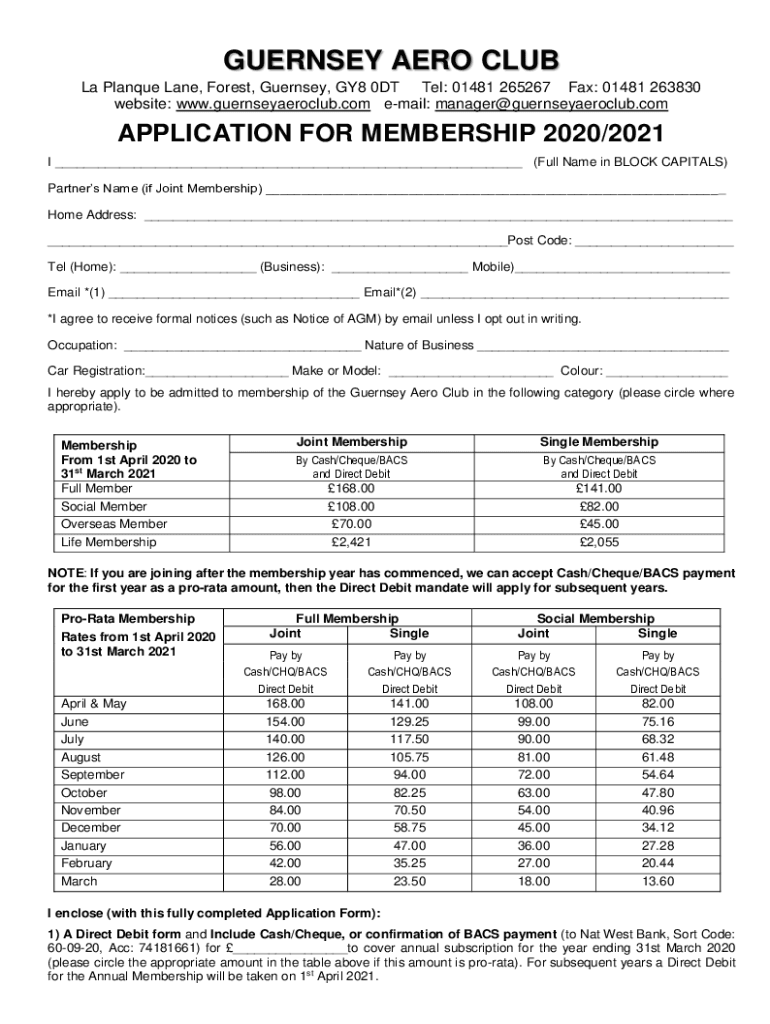 GUERNSEY AERO CLUB La Plaque Lane, Forest, Guernsey, GY8 0DT Tel: 01481 265267 Fax: 01481 263830 websites: www.guernseyaeroclub.com email: manager guernseyaeroclub. Complication FOR MEMBERSHIP 2020/2021