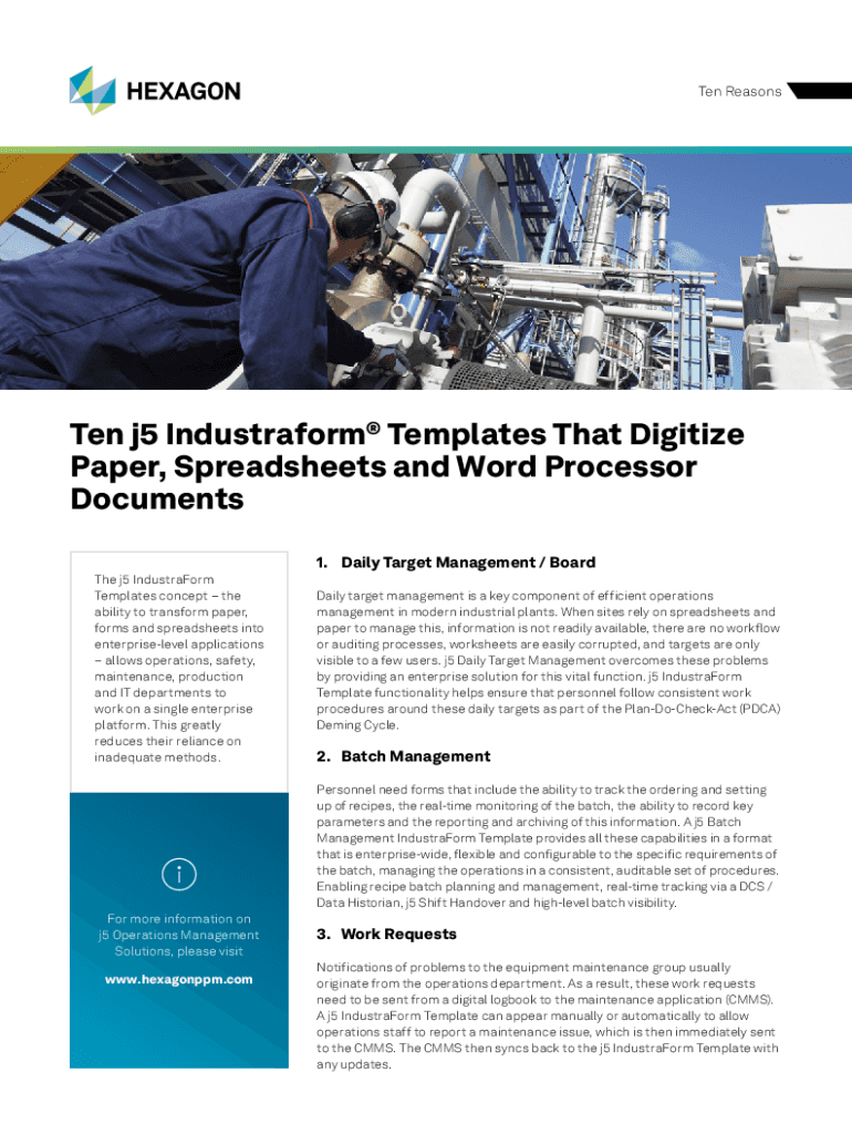 Ten Reasons j5 Industraform Templates That Digitize Paper, Spreadsheets and Word Processor Documents The j5 IndustraForm Templates concept the ability to transform paper, forms and spreadsheets into