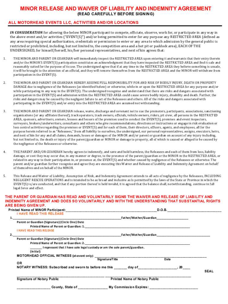 (READ CAREFULLY BEFORE SIGNING)ALL MOTÖRHEAD EVENTS LLC, ACTIVITIES AND/OR LOCATIONSINCONSIDERATIONforallowingthebelowMINORparticipanttocompete,