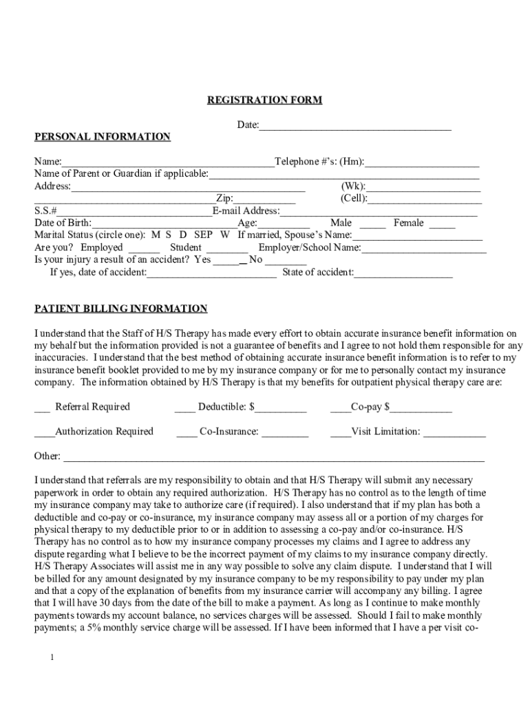 Get the free REGISTRATION FORM PERSONAL INFORMATION - H/S Therapy