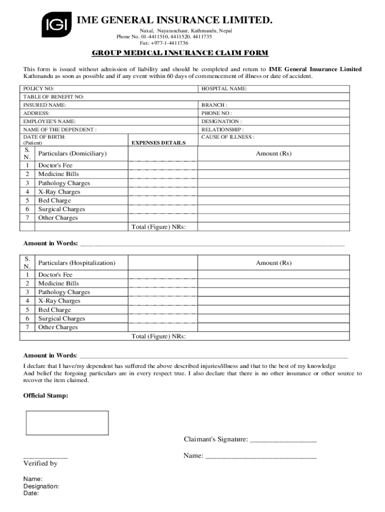 Fax: +97714411736GROUP MEDICAL INSURANCE CLAIM From