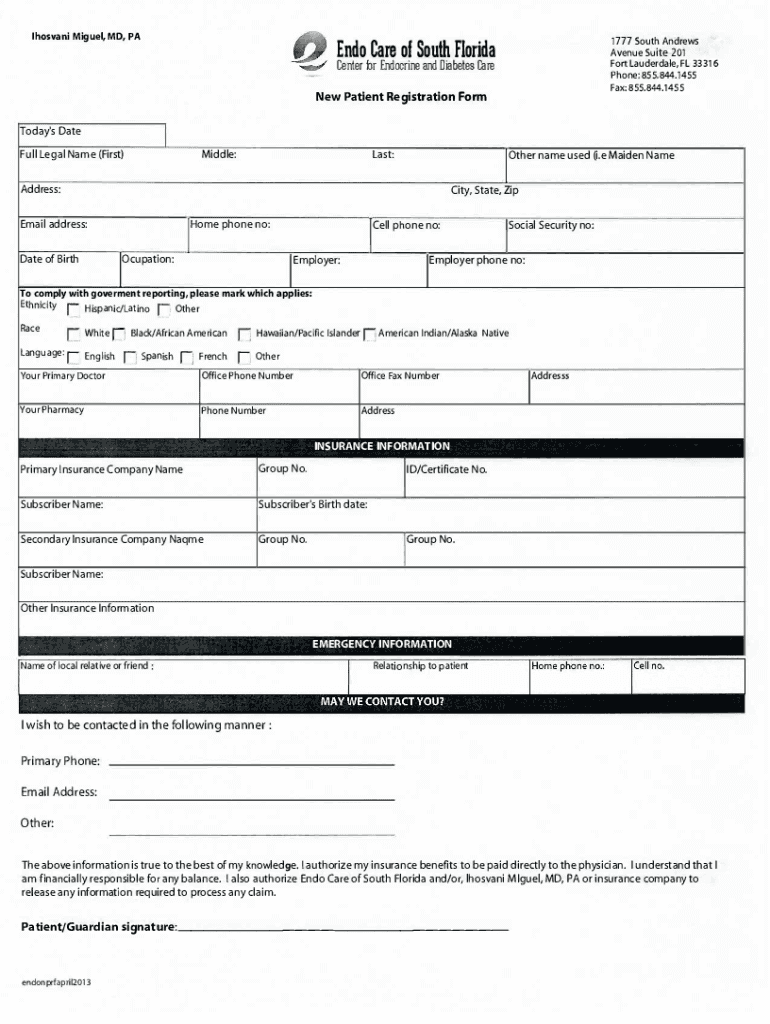 Get the free New Patient Registration Form - Ihosvani Miguel