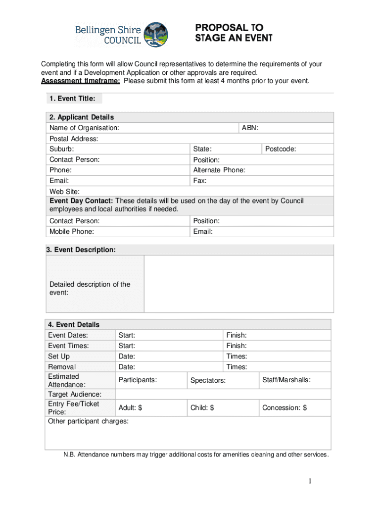 event and if a Development Application or other approvals are required.