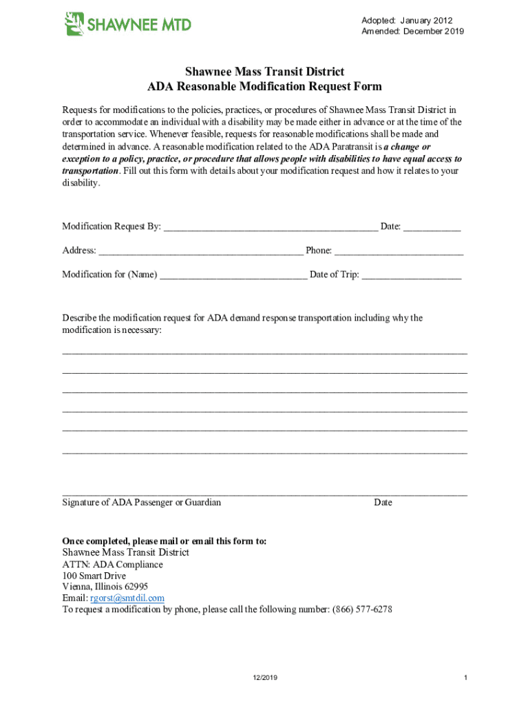 Requests for modifications to the policies, practices, or procedures of Shawnee Mass