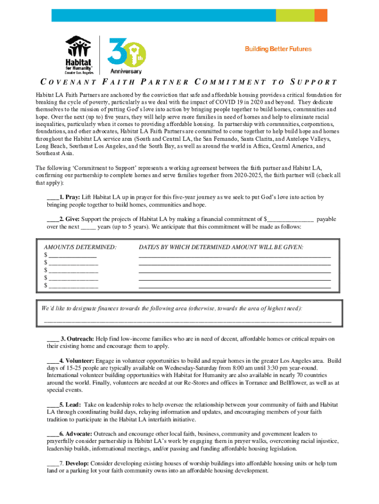 COVENANT FAITH PARTNER COMMITMENTTOSUPPORTHabitat LA Faith Partners are anchored by the conviction that safe and affordable housing provides a critical foundation for