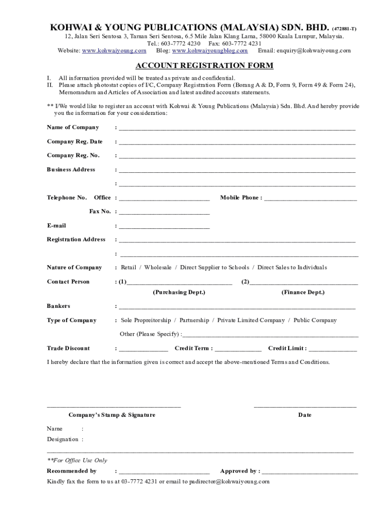 Get the free KOHWAI & YOUNG PUBLICATIONS (MALAYSIA) SDN. BHD. (472881-T ...