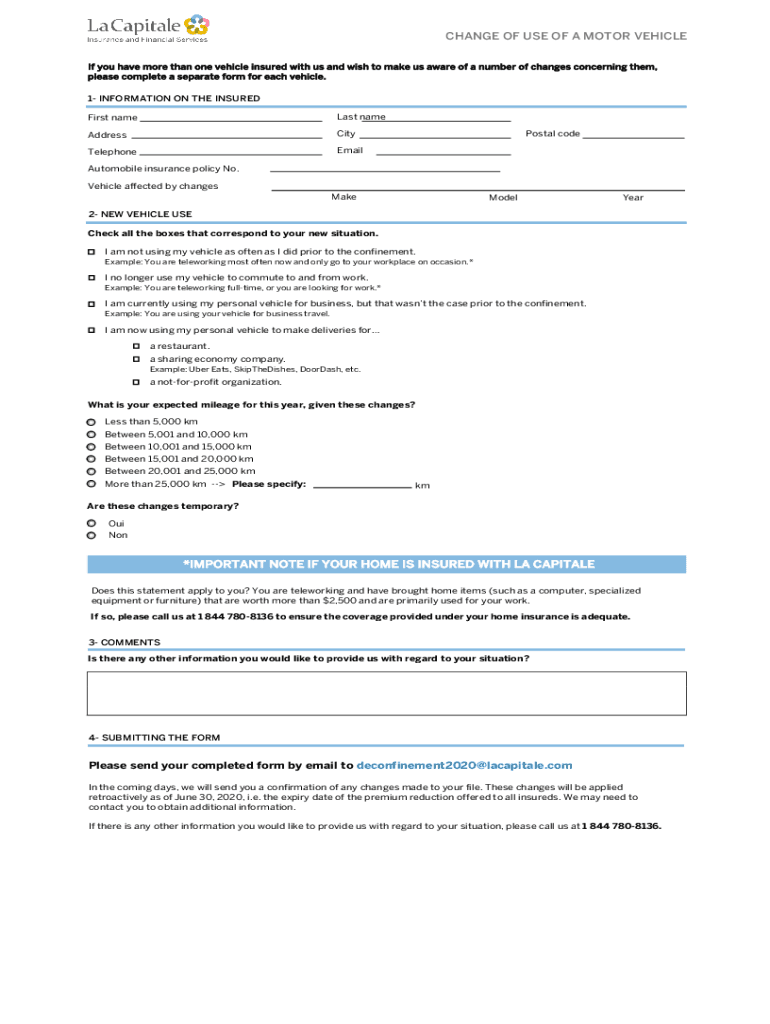 please complete a separate form for each vehicle.