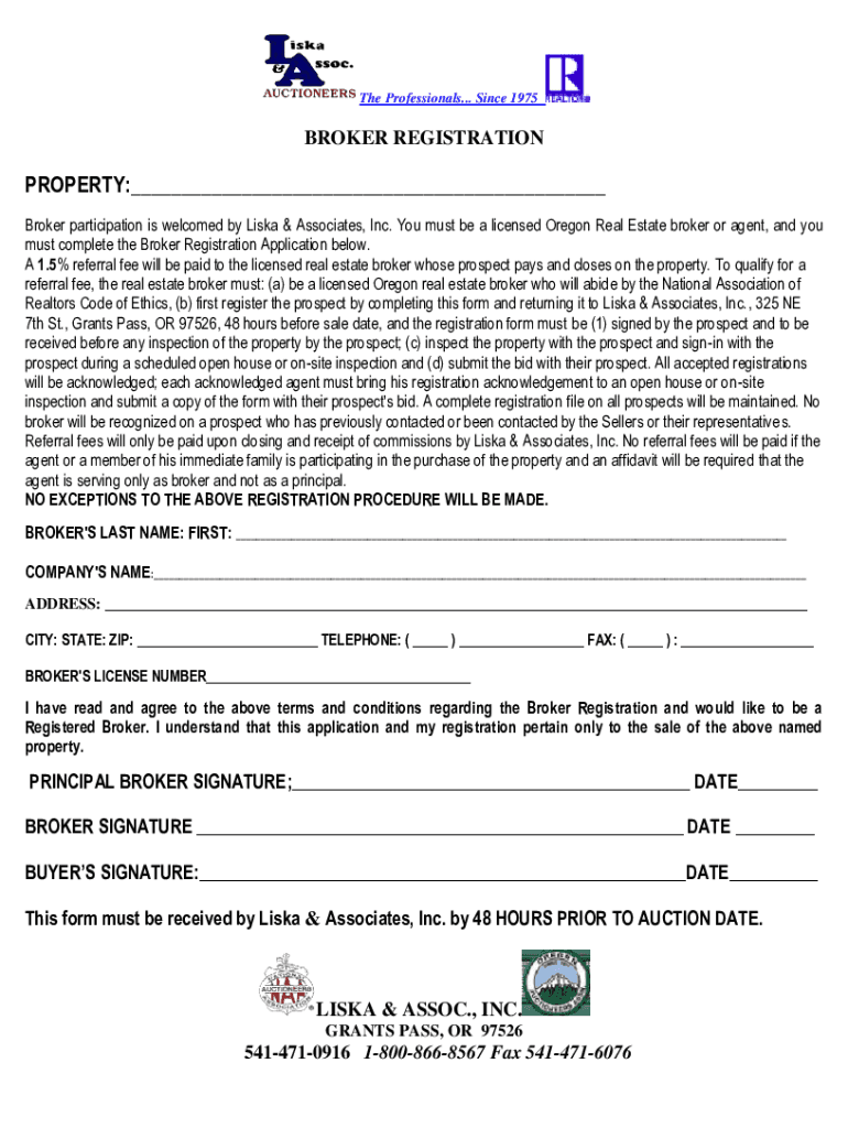 The Professionals... Since 1975BROKER REGISTRATIONPROPERTY: Broker participation is welcomed by Lisa & Associates, Inc. You must be a licensed Oregon Real Estate broker or agent, and you must complete