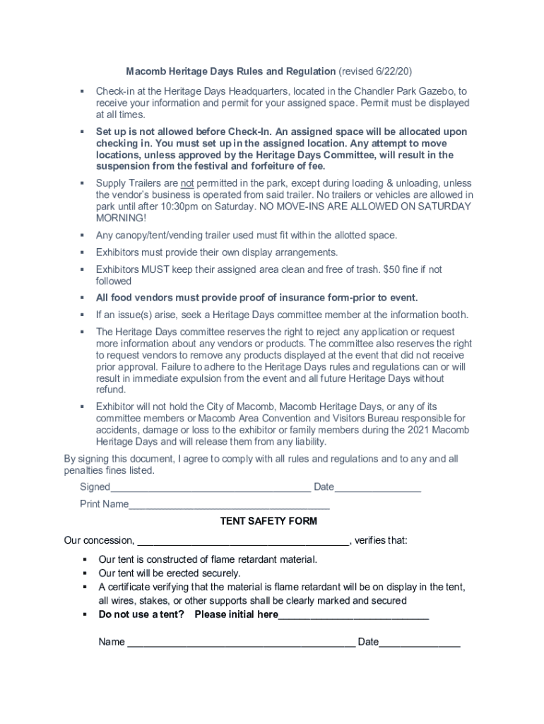 Macomb Heritage Days Rules and Regulation (revised 6/22/20)