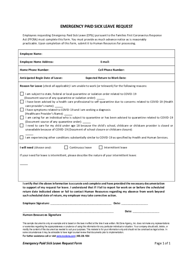 Get the free Families First Coronavirus Response Act (FFRA) Leave ...