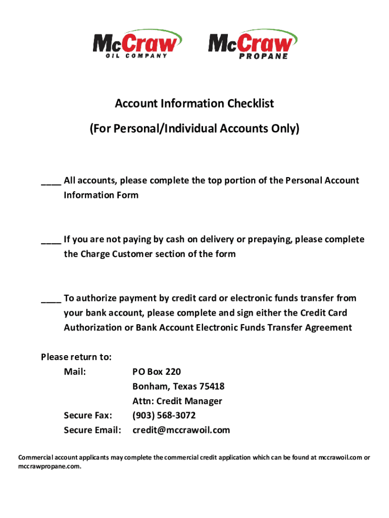 Get the free Commercial Credit Application Checklist - mccrawoilandpropane.com