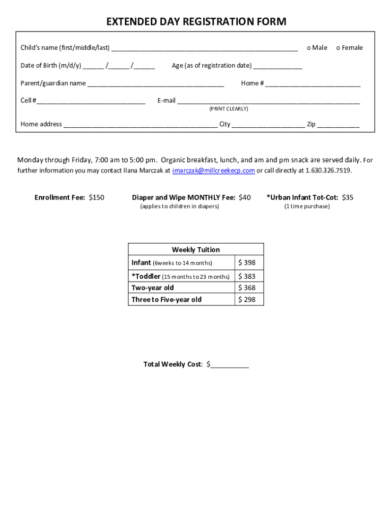 EXTENDED DAY REGISTRATION FORM Child's name (first/middle/last) Date of Birth (m/d/y) / / o Females (as of registration date) Parent/guardian name Cell # o Malone # Email (PRINT CLEARLY)Home address