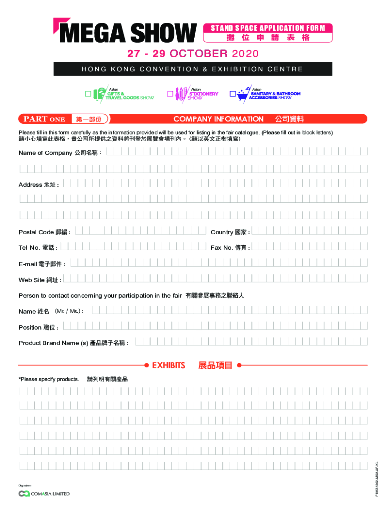 STAND SPACE APPLICATION FORM PART COMPANY INFORMATIONPlease fill in this form carefully as the information provided will be used for listing in the fair catalog. (Please fill out in block letters)Name