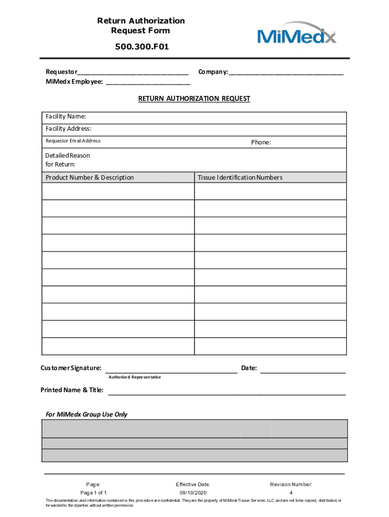 Get the free Return Authorization Request Form 500.300 - MiMedx