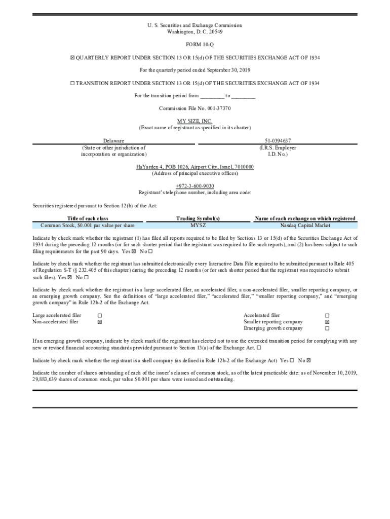 U. S. Securities and Exchange Commission Washington, D. C. 20549 FORM 10Q QUARTERLY REPORT UNDER SECTION 13 OR 15(d) OF THE SECURITIES EXCHANGE ACT OF 1934 For the quarterly period ended September