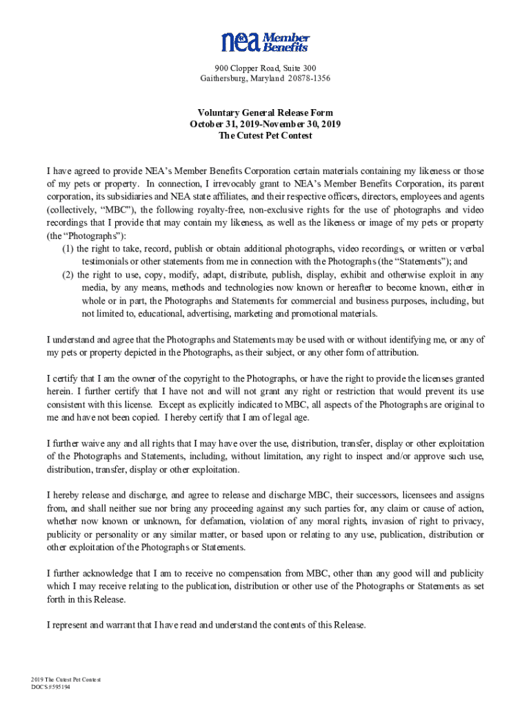 Who needs neamb-595194-v1-giveawayvoluntarygeneralreleaseform-2019formcutestpetcontest voluntary general release?