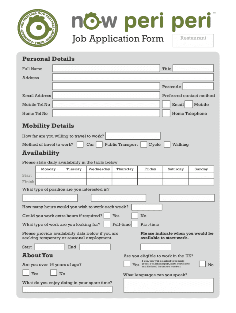 Get the free Sample Job Application Form For RestaurantTemplates at ...