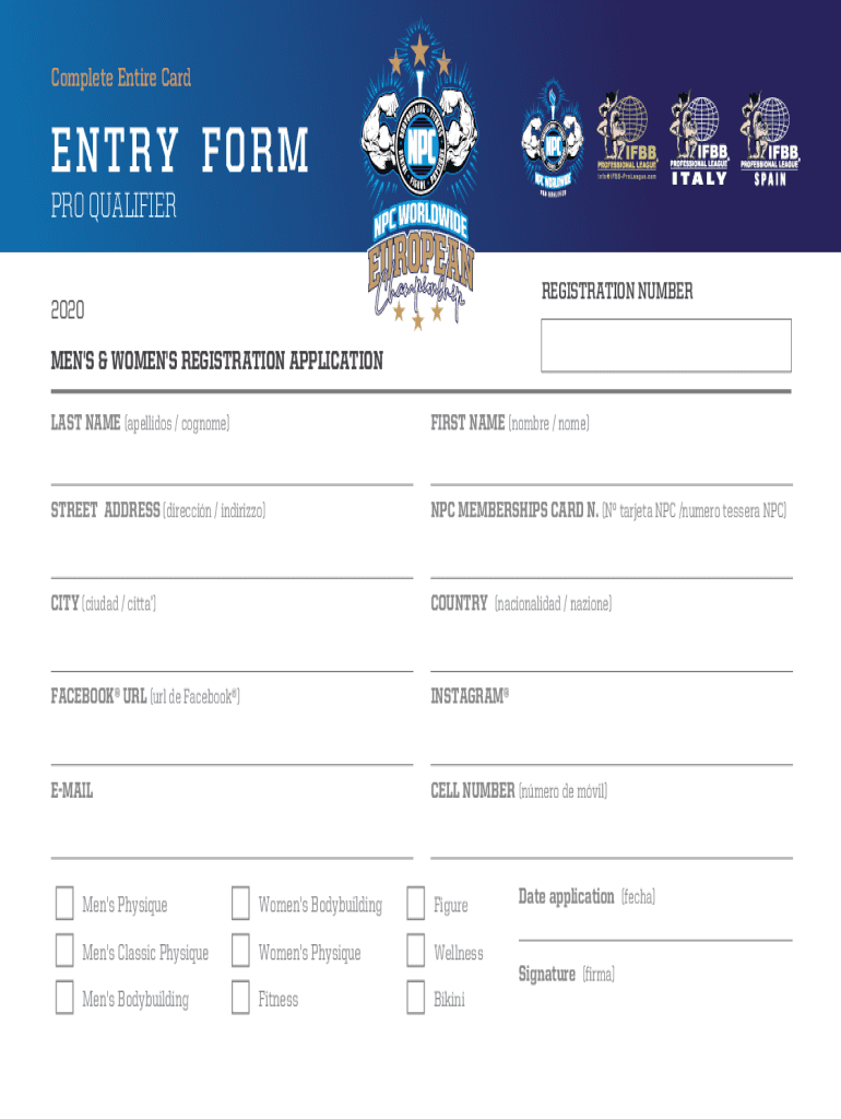 Complete Entire Carpentry FORM PRO QUALIFIER REGISTRATION NUMBER2020 MEN IS & WOMEN IS REGISTRATION APPLICATION LAST NAME (spellings / cognomen)FIRST NAME (hombre / Nome)STREET ADDRESS (direction