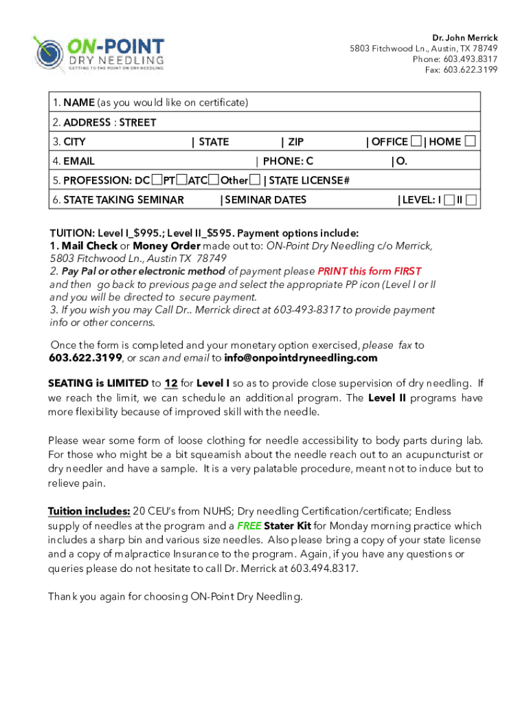 Dr. John Merrick 5803 Fitch wood Ln., Austin, TX 78749 Phone: 603.493.8317 Fax: 603.622.31991. NAME (as you would like on certificate) 2. ADDRESS : STREET 3. CITY STATE4. EMAIL 5. PROFESSION: DC ZIP