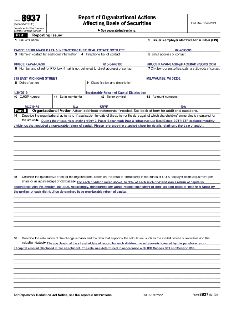 8937Report of Organizational Actions Affecting Basis of SecuritiesForm (December 2011) Department of the Treasury Internal Revenue Serviceman Ia See OMB No. 15452224separate instructions. Reporting