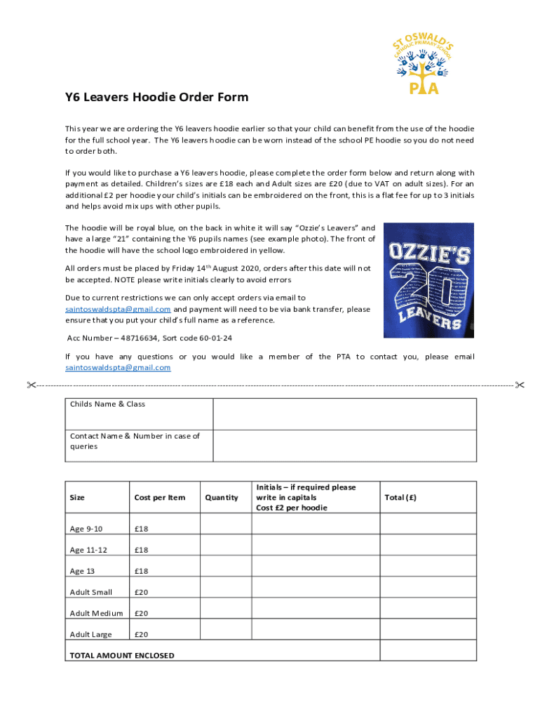 Y6 Leavers Hoodie Order Form