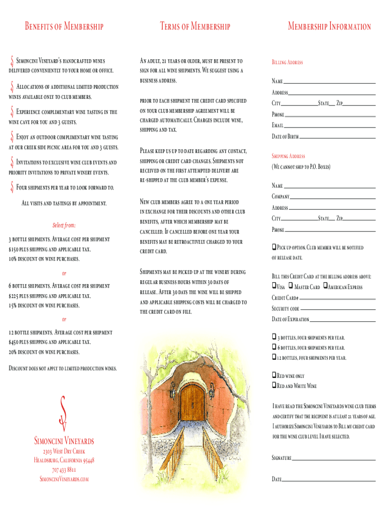 To fill out a Simoncini Vineyards wine order, follow these steps: