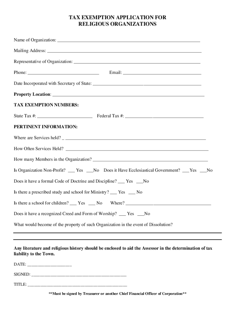 Get the free TAX EXEMPTION APPLICATION FOR RELIGIOUS ORGANIZATIONS