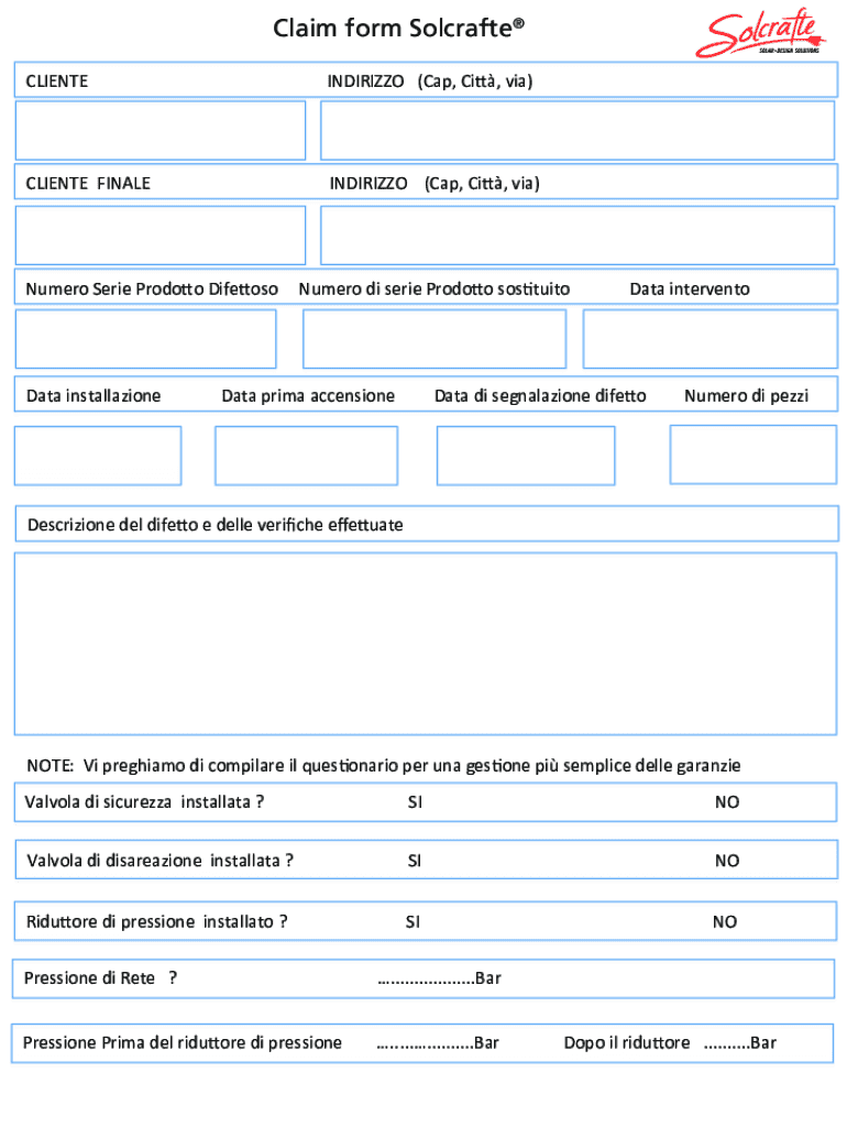 Claim form Tolerate Claim form Tolerate CLIENTEINDIRIZZO(Cap, Ci1, via)Address (ZIP city street)CustomerAdress (ZIP city street)Customer End customerAdress (ZIP city street)CLIENTEFINALEINDIRIZZO(Cap,