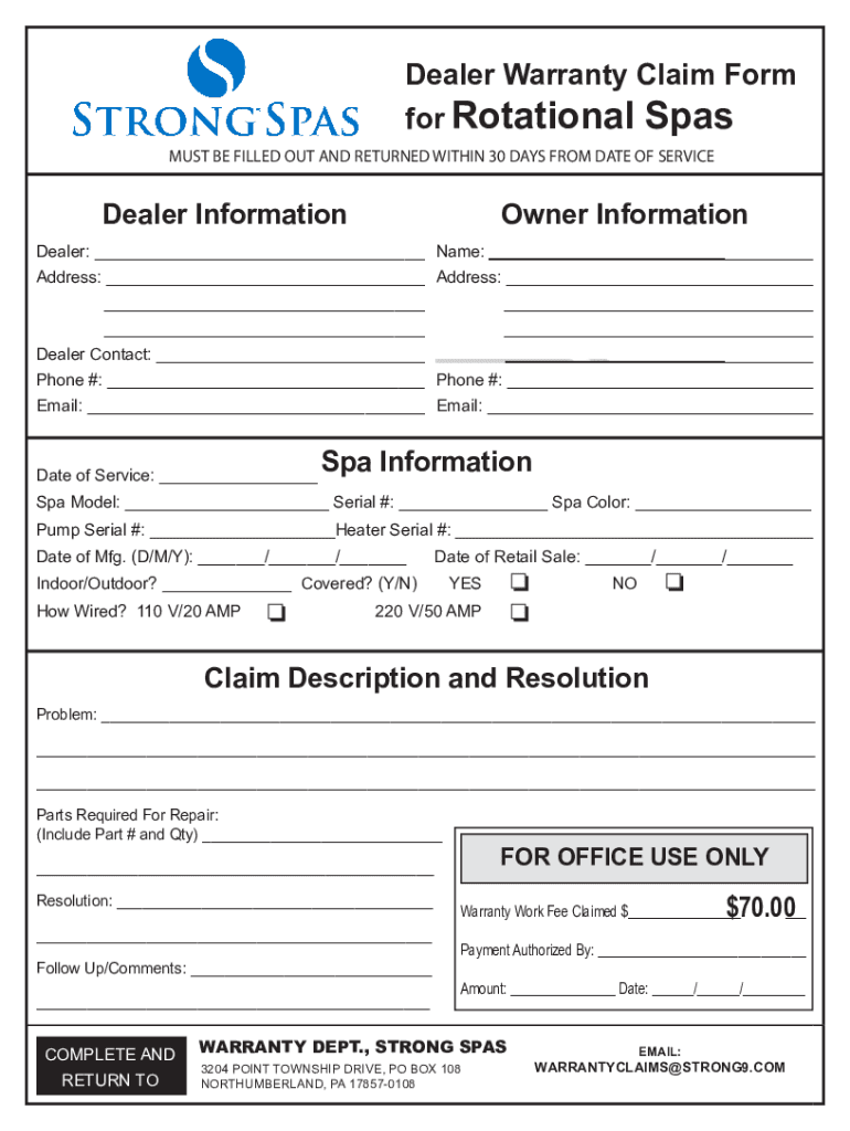 Get the free PDF Roto Spa Claim Form - Strong Spas