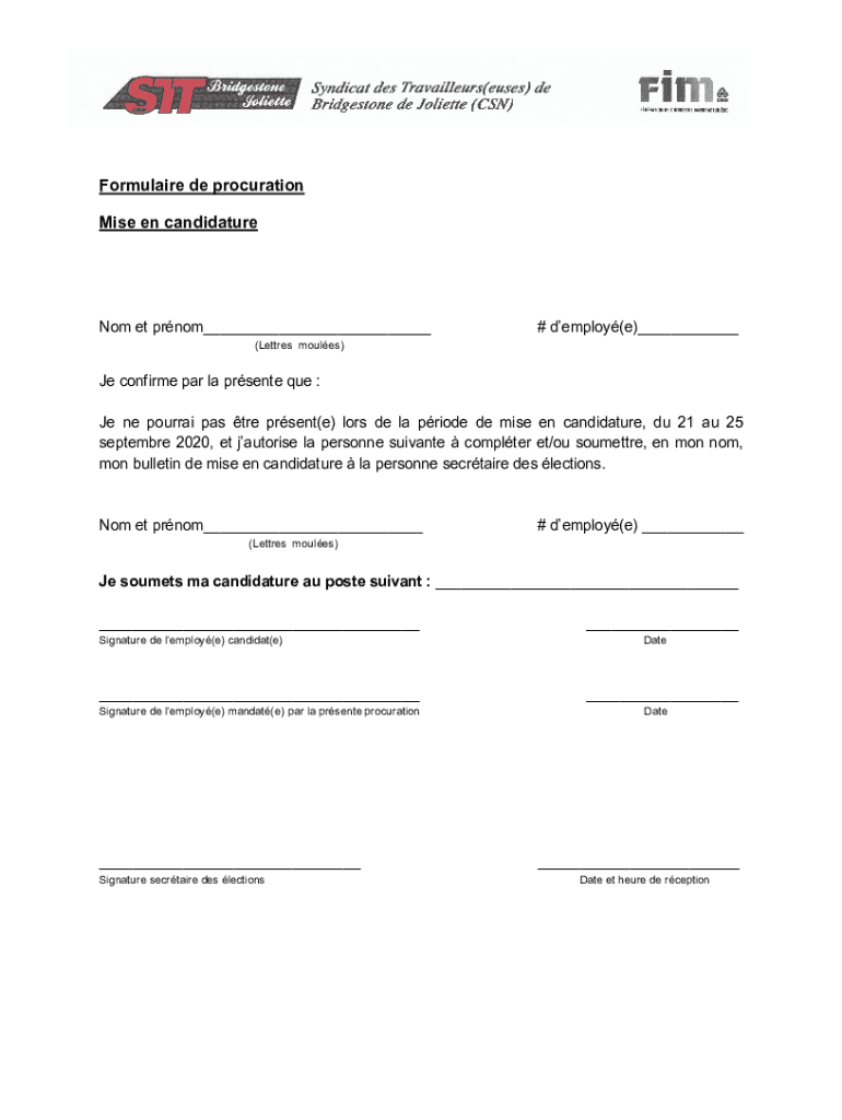 Obtenir le gratuit Formulaire de procuration Mise en candidature