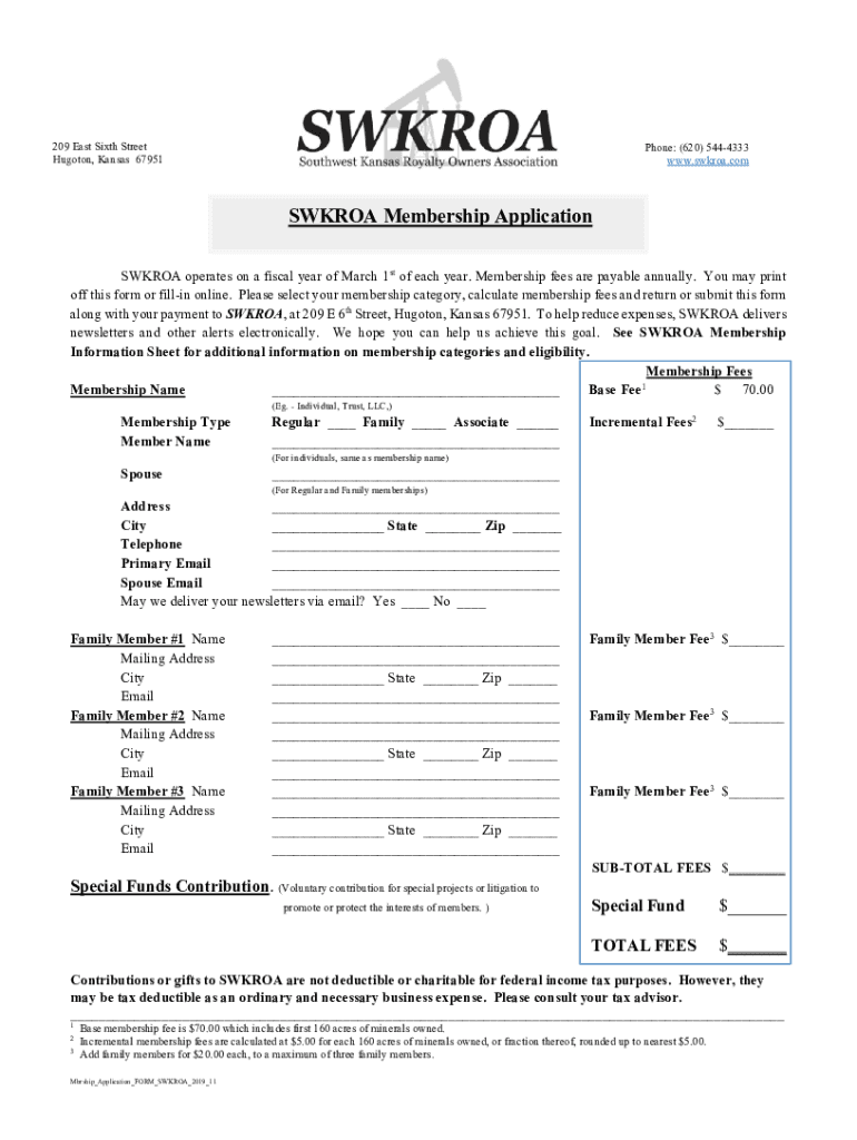 Any individual who wants to become a member of the SWKROA is required to file a membership application.