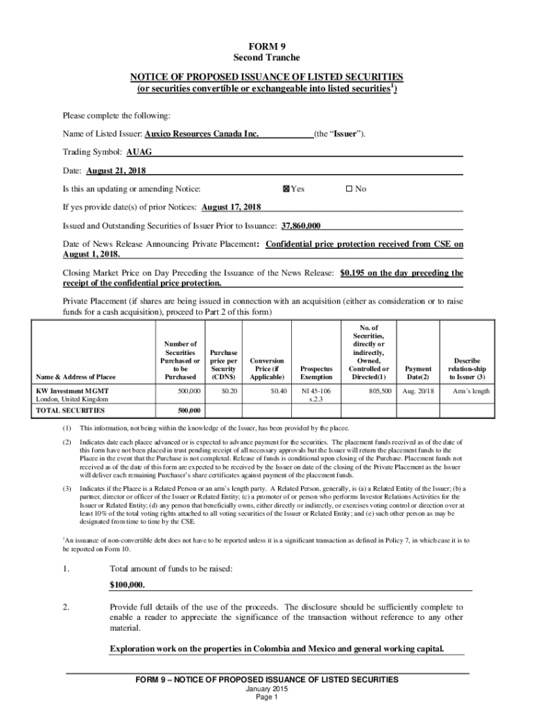 Get the free Form 9 - Proposed Issuance of Listed SecuritiesVersus ...