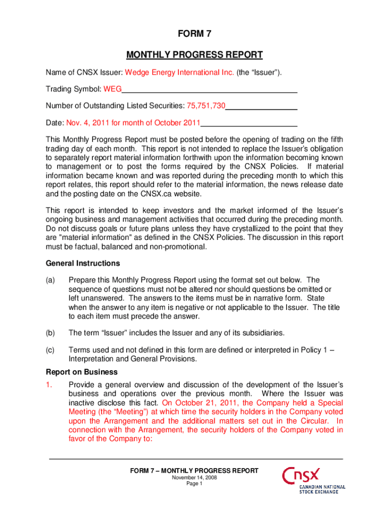 Name of CNS Issuer: Wedge Energy International Inc. (the Issuer).
