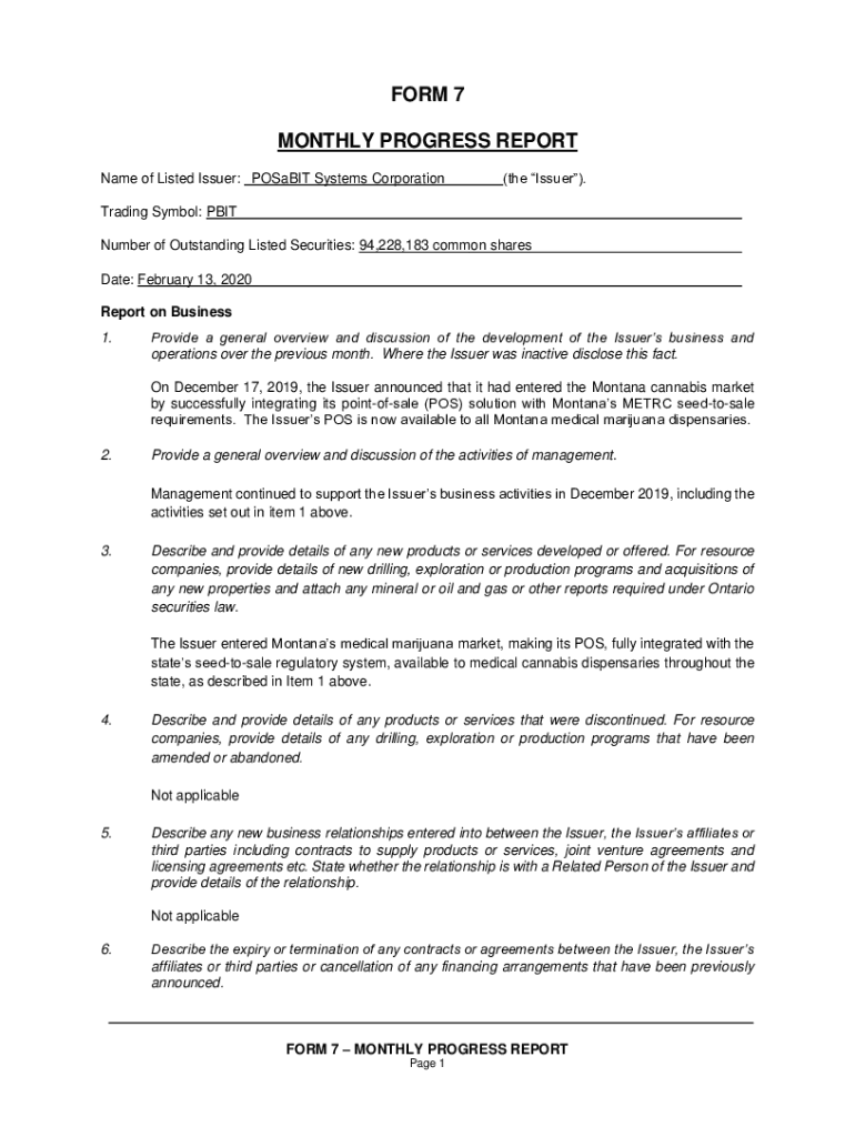 Get the free Name of Listed Issuer: POSaBIT Systems Corporation