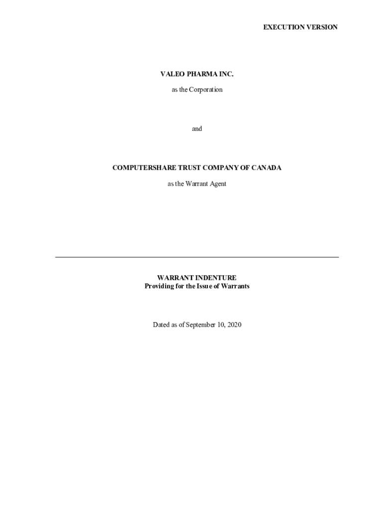 Providing for the Issue of WarrantsDated as of September 10, 2020TABLE