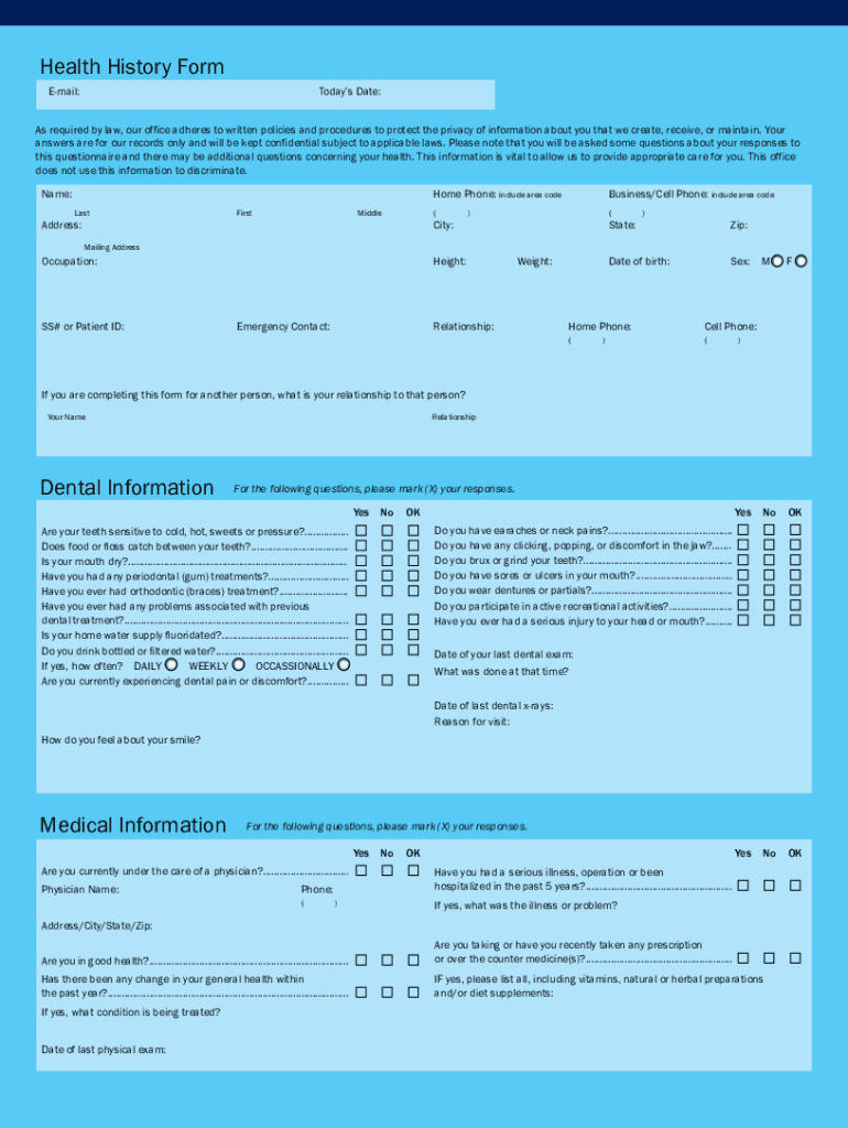 How to fill out health history form