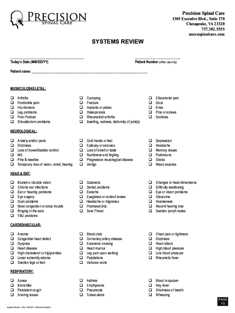 To fill out a systems review form, follow these steps: