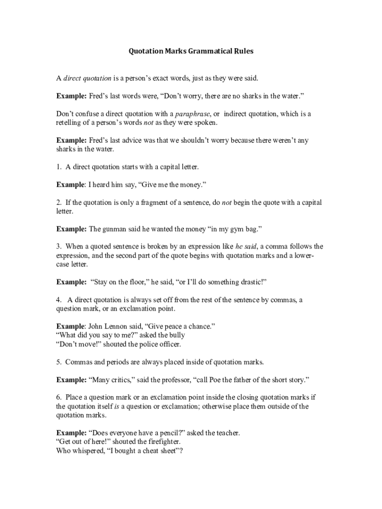 The quotation marks grammatical rulesdocx should include guidelines on direct quotations, titles of works, dialogue, and other instances where quotation marks are necessary.