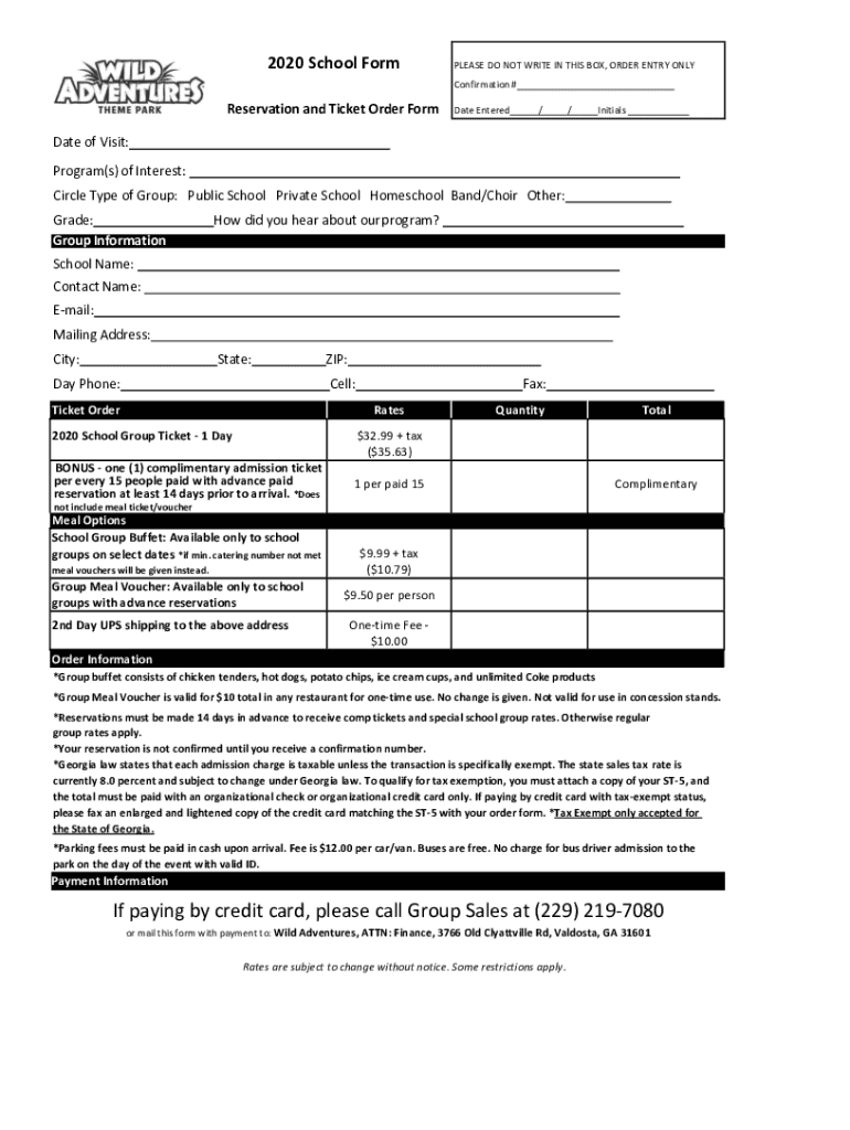 Get the free 2020 Education Days Form PLEASE DO NOT ... - Wild Adventures