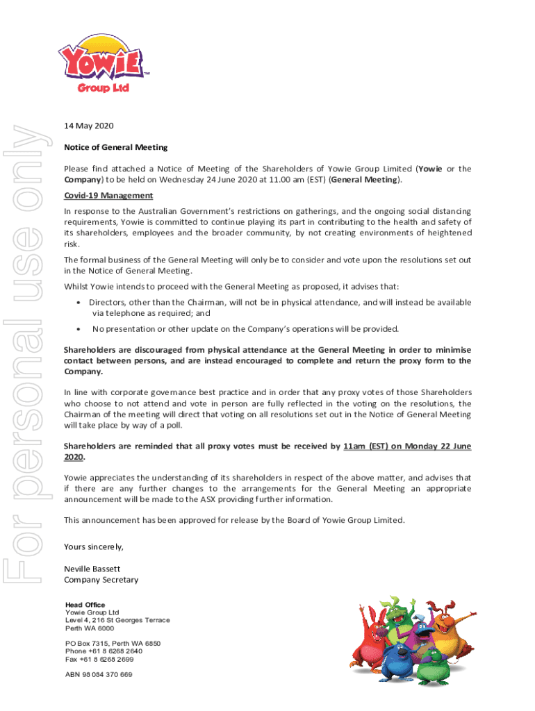 The notice of meeting of is a formal announcement sent to shareholders or members of a company informing them about an upcoming meeting.