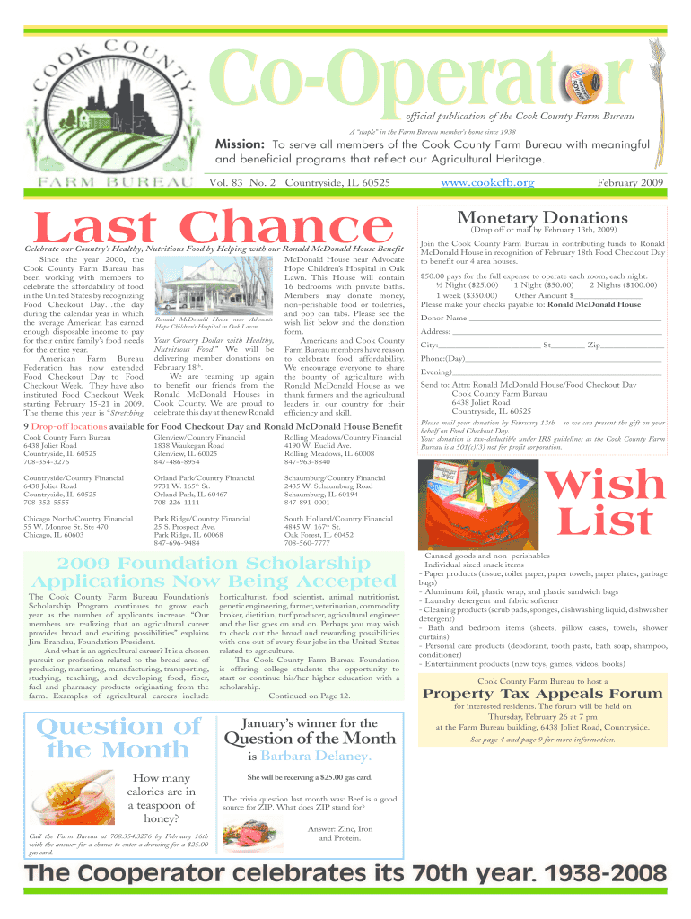 The Cook County Farm Bureau Donation Form is designed to facilitate monetary contributions to the Ronald McDonald House, specifically supporting children and families in need around Advocate Hope Children's Hospital in Oak Lawn. By using this donation form, individuals can significantly impact the welfare of children who rely on the services provided by the Ronald McDonald House. Donors must ensure that the form is properly signed and submitted by the specified deadline of February 13th, 2009.