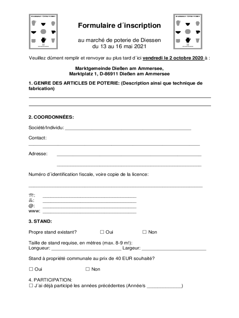 Obtenir le gratuit APPLICATION FORM - Diessen am Ammersee