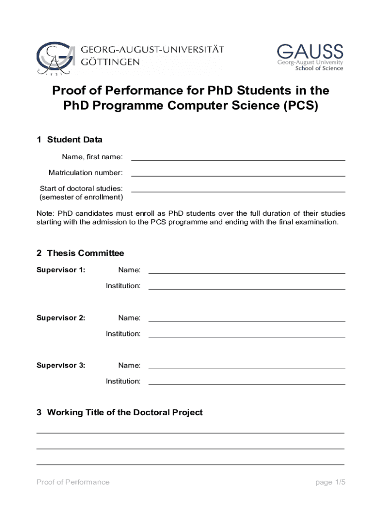 Get the free Proof of Performance for PhD Students in the PhD Programme ...
